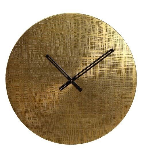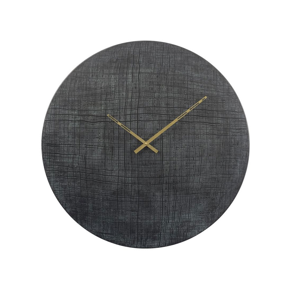 Crafted from cast aluminum, this clock is available in two elegant finishes — antique gold and antique black — each featuring a textured face adorned with flowing line patterns. In both variants, the open-style hands offer a striking contrast: black hands accentuate the gold version, while golden hands enhance the black one. This thoughtful interplay of tones blends vintage charm with contemporary style, making it a standout piece for any setting.