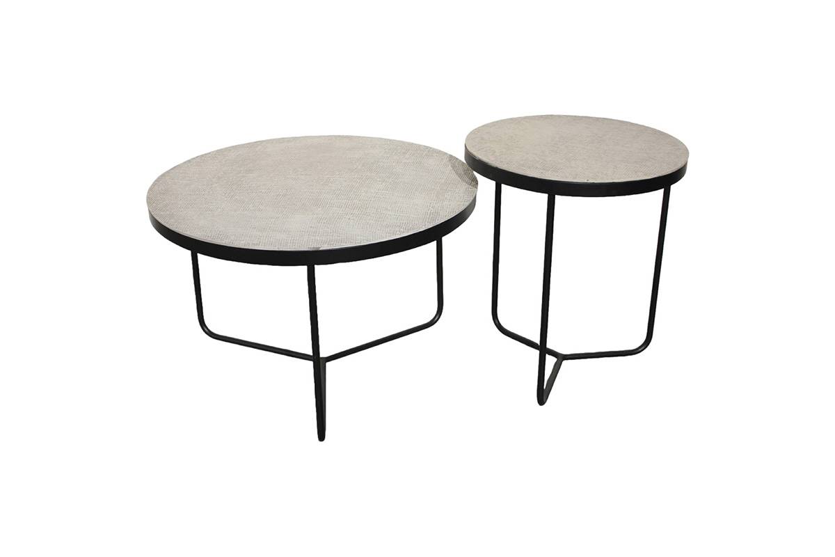 Elevate your living space with the minimalist elegance of the Zuri Coffee Table Set. Featuring a refined cast aluminium top in a soft beige tone, these tables exude quiet luxury with a subtle, textured finish. The round tabletops nest gracefully over sleek black iron bases, which are shaped in a modern geometric frame that adds a hint of architectural character. Ideal for contemporary and urban interiors, this set brings function, finesse, and a touch of understated glamour to your décor.